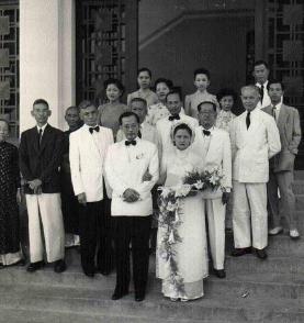 Mr. Hồ Văn Kiến (groom's father ). Other rows are the groom's relatives. - 1953 - Vĩnh Long, VN.
