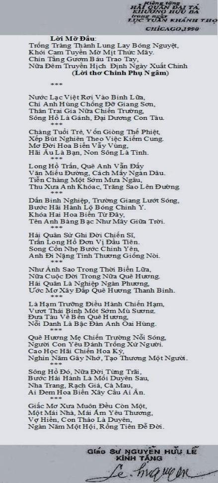 Một Bài Thơ Lục Bát - A Tribute from Professor Nguyễn Hữu Lễ - Former Inspector for the Replubic of South Việt Nam Department of Education