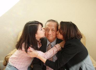 Mr. Khương Hữu Bá received love-hugs from his daughter Mrs. Phượng-Liên