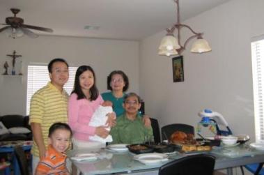 Three generations: From Left to Right - Vũ Minh Tiến Austin, Mr. Vũ Minh Trí, Mrs. Võ Phan Việt Anh with her newly born Baby Nathan, Mrs.Phan Thu Thuỷ, Mr. Võ Hoài Việt. |