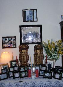 Bàn Thờ Hương Quả tại Plano, Texas, USA. Bài VịTổ Tiên trên 200 năm tiểu sử Đại Gia Đình Khương Hữu còn được lưu truyền - Hình cũa các ông các bà đều đầy đủ. Hình Mộ Bia ỡ Đất Thánh Khương Hữu tại Vỉnh Long và Mỷ Tho có trên Bàn Thờ...