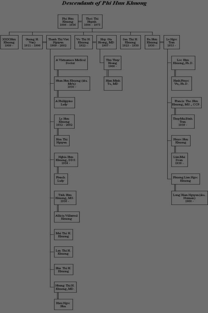 | Mr. Khương Hữu Phi (1886 - 1936) Direct Descendants |