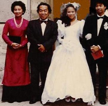 Mrs. Lê Nguyệt Hồ - her husband Trần Văn Trạch with their daughter Hà on her wedding day