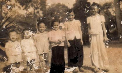 | Mrs. Khương H. Thị Ngân's children From Left to Right: Lê Quang Tám, Lê Quang Minh, Lê Quang Vọng, Lê Nguyệ̣t Thu, Lê Nguyệt Ánh, and Lê Nguyệt Hồ. |