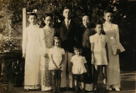 | Mr. & Mrs. Khương Hữu Lân grand-family: Khương H. Thị Lắm, Khương H. Thị Ngân, Mr. and Mrs. Khương Hữu Lân, Khương H. Thị Ngàn, Second row: Nguyệt Vân, Vọng, and Nguyệt Hồ. |