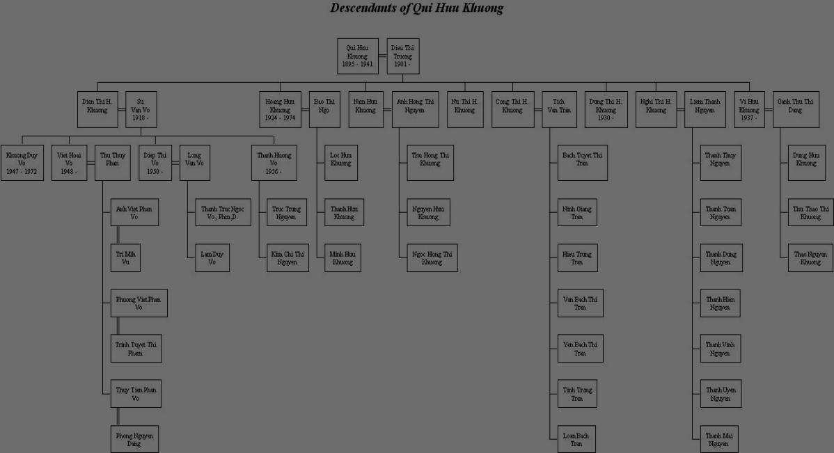 | Mr. Khương Hữu Qui (1895 - 1941) Direct Descendants |